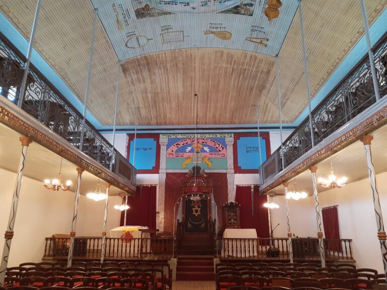 Las llaves de Teresa nos llevan ahora a las dos sinagogas de la ciudad. La primera no está en funcionamiento: la sinagoga Beth o Beit Abraham, popularmente conocida como la “Shill de los Arbetn”. O sea, en idish, la “sinagoga de los trabajadores”. Es la más pequeña y simple, pero al mismo tiempo resulta entrañable. Fue construida por los artesanos en 1917, con los oficios adquiridos en Europa.