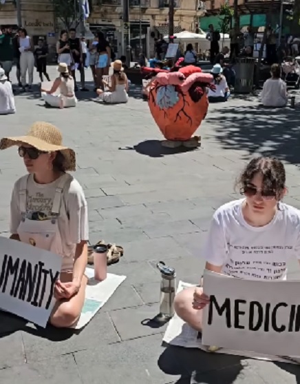 Poco antes, una activista llamada Alma y sus compañeras de Women Sit For Peace, un grupo de mujeres vestidas de blanco que organizan sentadas contra la guerra, cargaron una enorme escultura de un corazón humano en el compartimento de equipajes del autobús; la llevarían durante la marcha. «Preparamos el corazón hace unos meses, como grupo. Habían pasado un par de meses desde que comenzó la guerra y nos pareció muy difícil quedarnos sentados mientras veíamos que se estaba produciendo una masacre tan terrible y que los rehenes no regresaban de Gaza. Queríamos llevar el mensaje de santificar la vida en un momento en el que parece que sólo se está santificando la muerte», explicó.