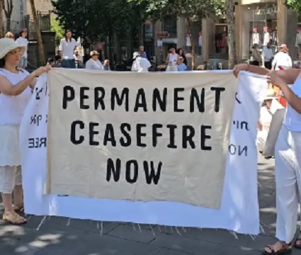 «Somos israelíes y palestinos que hemos venido a decir: ‘no más ocupación, no más guerra, no más violencia de los colonos, no más violencia militar, no más robo de recursos a los palestinos que viven en Cisjordania y fuera de ella'», dijo Biran.