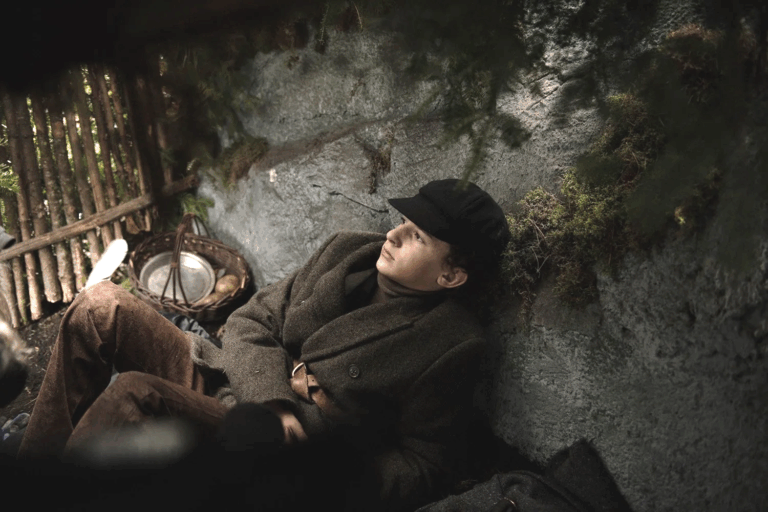 Antes de dejarlo partir, le da las herramientas para sobrevivir: le enseña a reconocer los secretos del bosque -cómo construir un refugio, distinguir las setas comestibles de las venenosas, cazar conejos, buscar agua y encender fuego-. Aun así, Max se siente nuevamente abandonado. “¿Cuánto vale un judío?”, le pregunta con amargura, sospechando que también esa ayuda respondía a un interés material. Jazko, el granjero, le confiesa entonces que la policía lo soborna a veces con azúcar o con vodka.