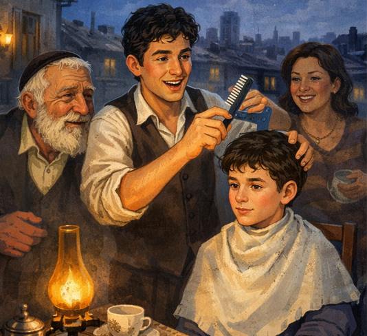 Como el menor de la serie generacional, fui elegido para someterme a una prueba con el aparato. Sentado en una silla, con una servilleta anudada al cuello e inmóvil soporté pacientemente que Hérshele comenzara a pasar ida y vuelta su instrumento, desde la coronilla hasta la nuca, para demostrar su eficacia. Rastrilló así un caminito de unos dos centímetros de ancho, desde arriba hacia abajo.
